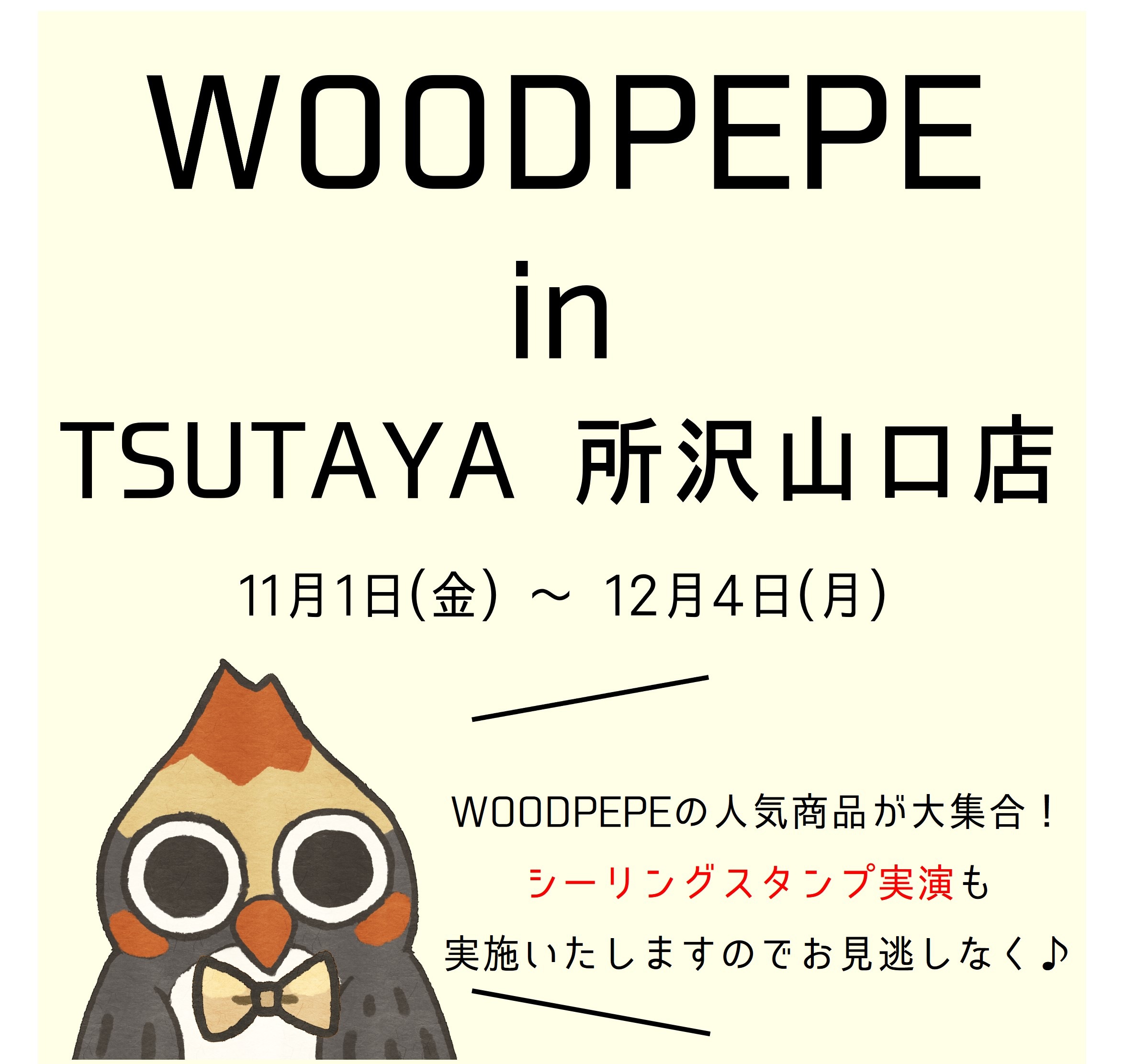 この度、「TSUTAYA所沢山口店」に期間限定でWOODPEPEコーナーが登場いたします。